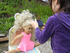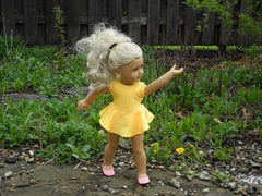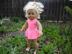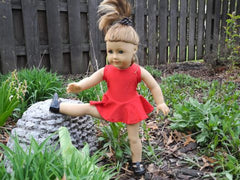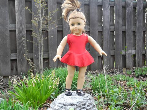 When your American Girl Doll exercises, dances or practices gymnastics she'll look stylish in this skirted leotard. Available in red, pink, black, purple, yellow, or white stretch fabric.